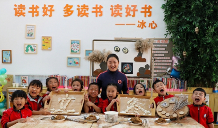 立冬时节,吃饺子成为中原地区的传统民俗。小朋友在老师的带领下学习包饺子,锻炼动手能力,在欢乐成长中接受传统文化的熏陶。
