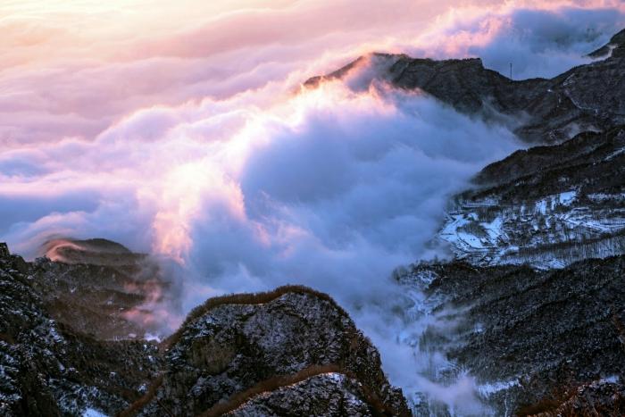 刚被薄雪光顾过的南太行,云雾与起伏的山脉相映成趣,如诗如画。