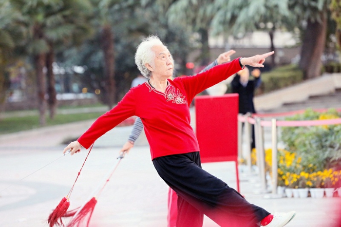 “冬天动一动,少闹一场病”。北风啸啸、寒气袭来。公园里几位老人正在练太极剑,增强身体的抵抗能力,最美的“夕阳”驱赶着日益寒冷的冬季。