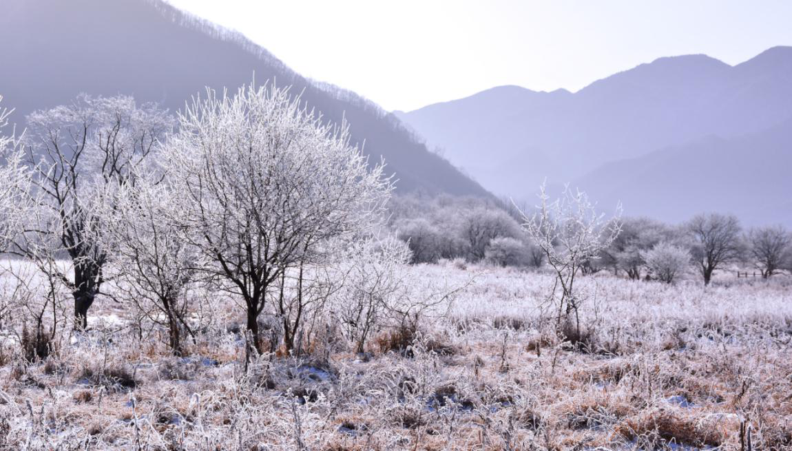 清晨的“山岚”被寒风迅速凝结,将大地装扮得银装素裹、分外妖娆,宛如仙境。
