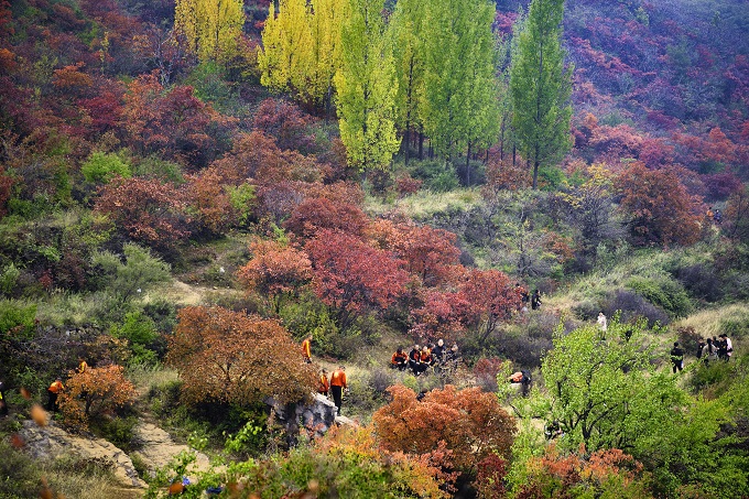 大美十月,中原大地红叶漫山,五彩林叶间游人往来,自然的绚烂与游人的活力交织,谱写出独属于秋天的动人乐章。(郑州市上街区纪委监委 韦耀星 摄)