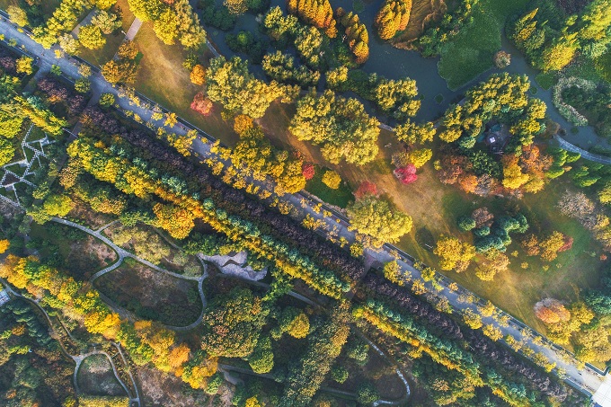 深秋十月,杳杳秋阳洒向大地、照进丛林,把红橙黄绿各种色彩映衬得更加浓淡有致,让绚烂多姿的秋色变得更加温暖明丽,成就了一幅浓墨重彩的秋日油画。(洛阳市涧西区纪委监委 段万卿 摄)