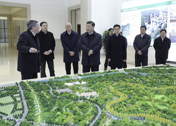 18日上午,习近平乘车前往北京城市副中心,并沿途察看“城市绿心”植树造林地块。在市委办公楼主楼,习近平通过设计模型和展板,详细了解副中心重大工程项目规划建设情况。习近平强调,建设北京城市副中心要坚持规划先行、质量第一。要把公共建筑与山水自然融为一体,科学布局生产、生活、生态空间,使工作、居住、休闲、交通、教育、医疗等有机衔接、便利快捷。要把规划执行好、落实好,把蓝图变为实景,使北京城市副中心成为这座千年古都又一张靓丽的城市名片。
