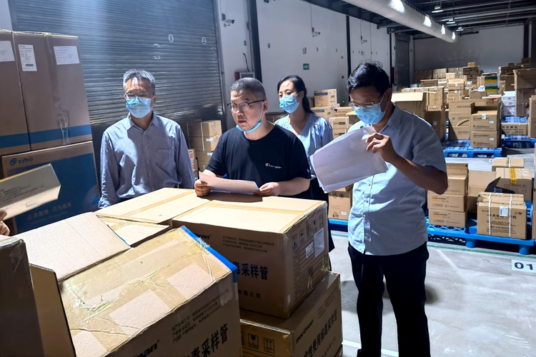该纪检监察组听取了专班工作开展情况,详细查看了相关工作台账,并同专班人员一起对国药集团河南医疗器械有限公司、河南华润医疗器械有限公司、国药控股开封有限公司等承储企业的防疫物资实际库存情况进行检查。重点查看各企业库存的防疫物资数量是否与台账一致,询问了解各种物资的准备、存储、管理、调拨以及补充等情况。对于检查中发现的问题,及时向责任单位及承储企业进行反馈,压紧压实工作责任,督促相关问题整改。