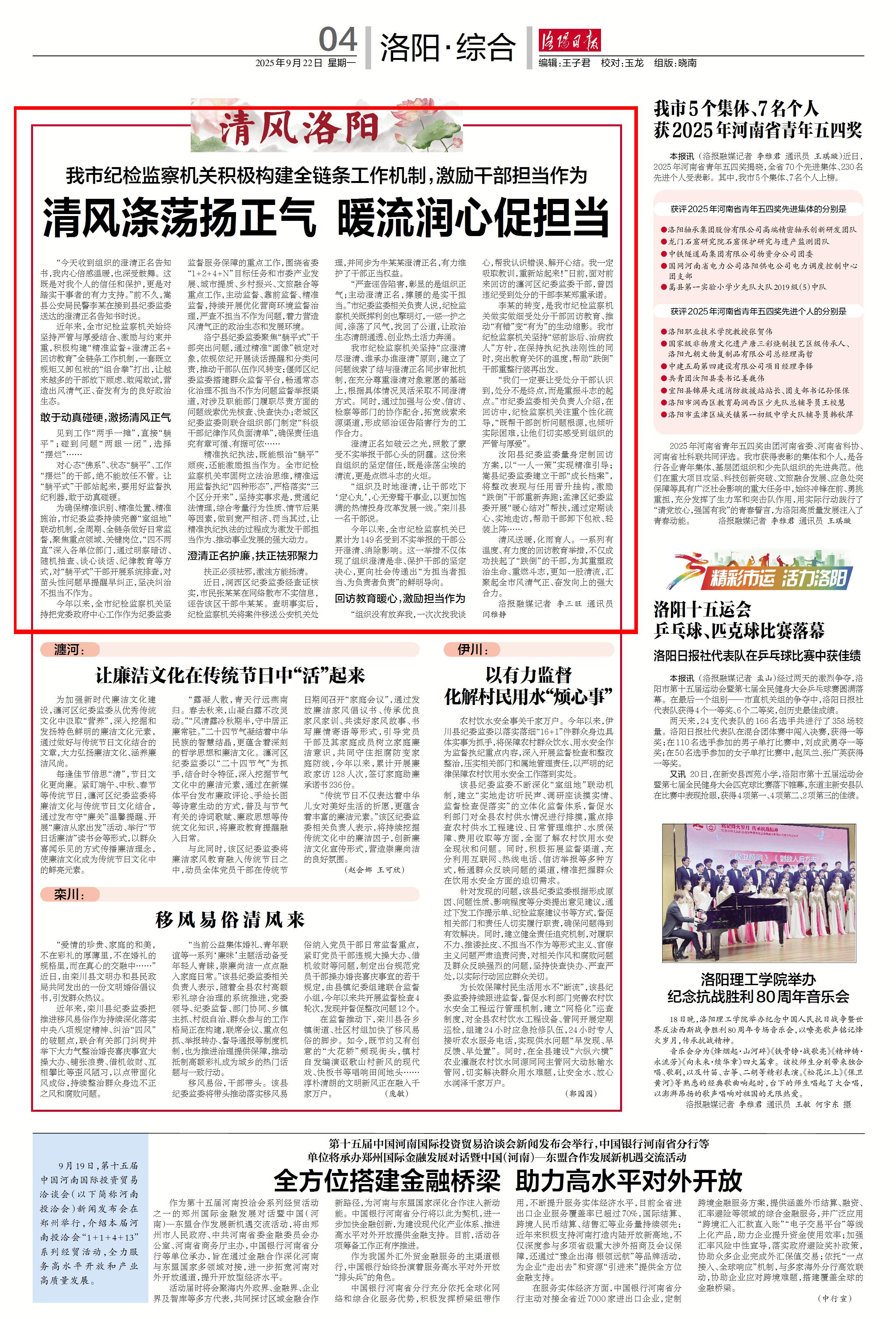 清风涤荡扬正气 暖流润心促担当