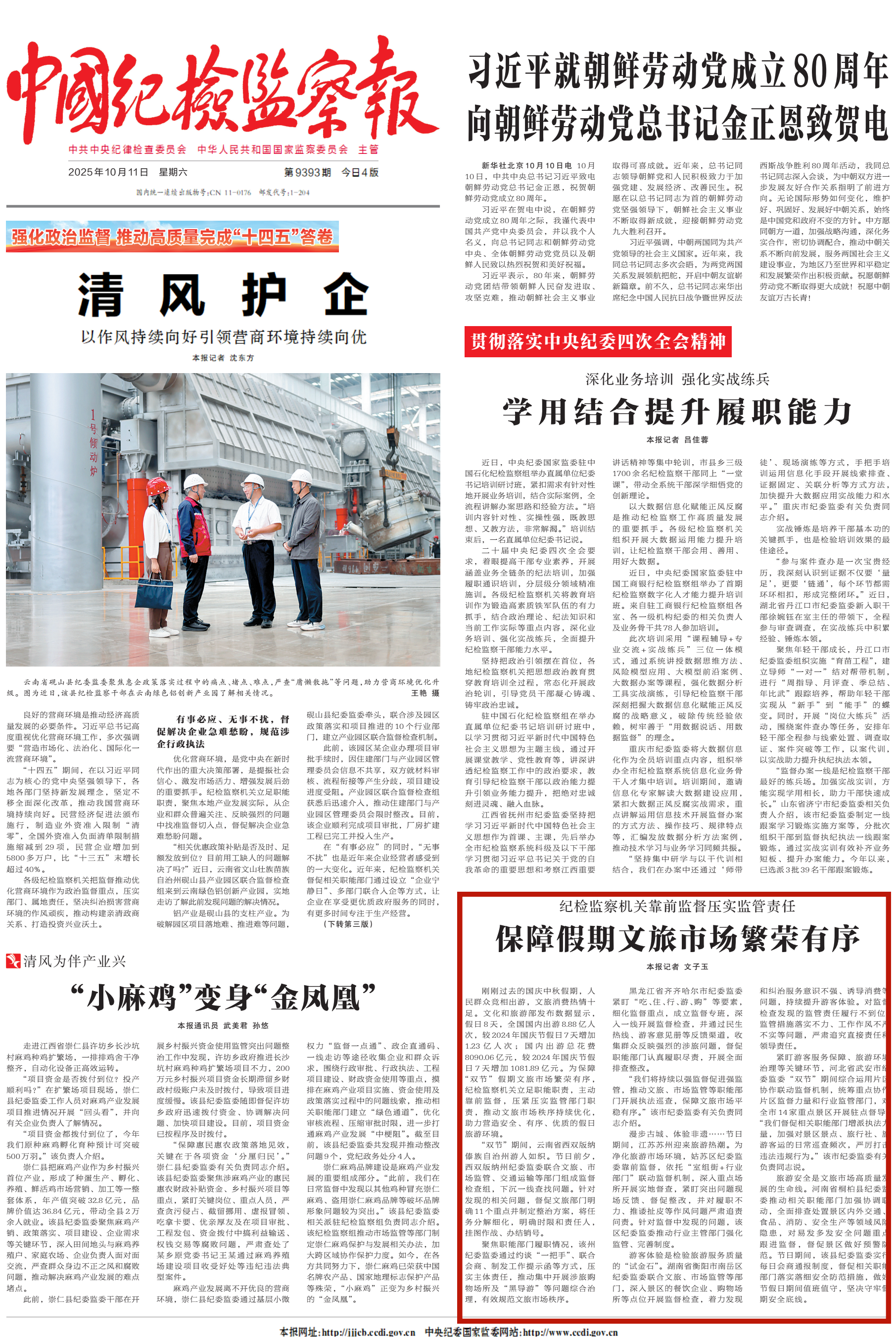 紧盯游客服务保障、旅游环境治理等关键环节,河北省武安市纪委监委“双节”期间综合运用片区协作联动监督机制,统筹重点协作片区监督力量和行业监管部门,对全市14家重点景区开展驻点督导。“我们督促相关职能部门增派执法力量,加强对景区景点、旅行社、旅游客运的日常巡查频次,严厉打击违法违规行为。”该市纪委监委有关负责同志说。