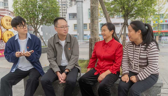 图为吴巍(左二)在贵州省铜仁市万山区某社区了解惠民政策落实情况。陈光明 摄