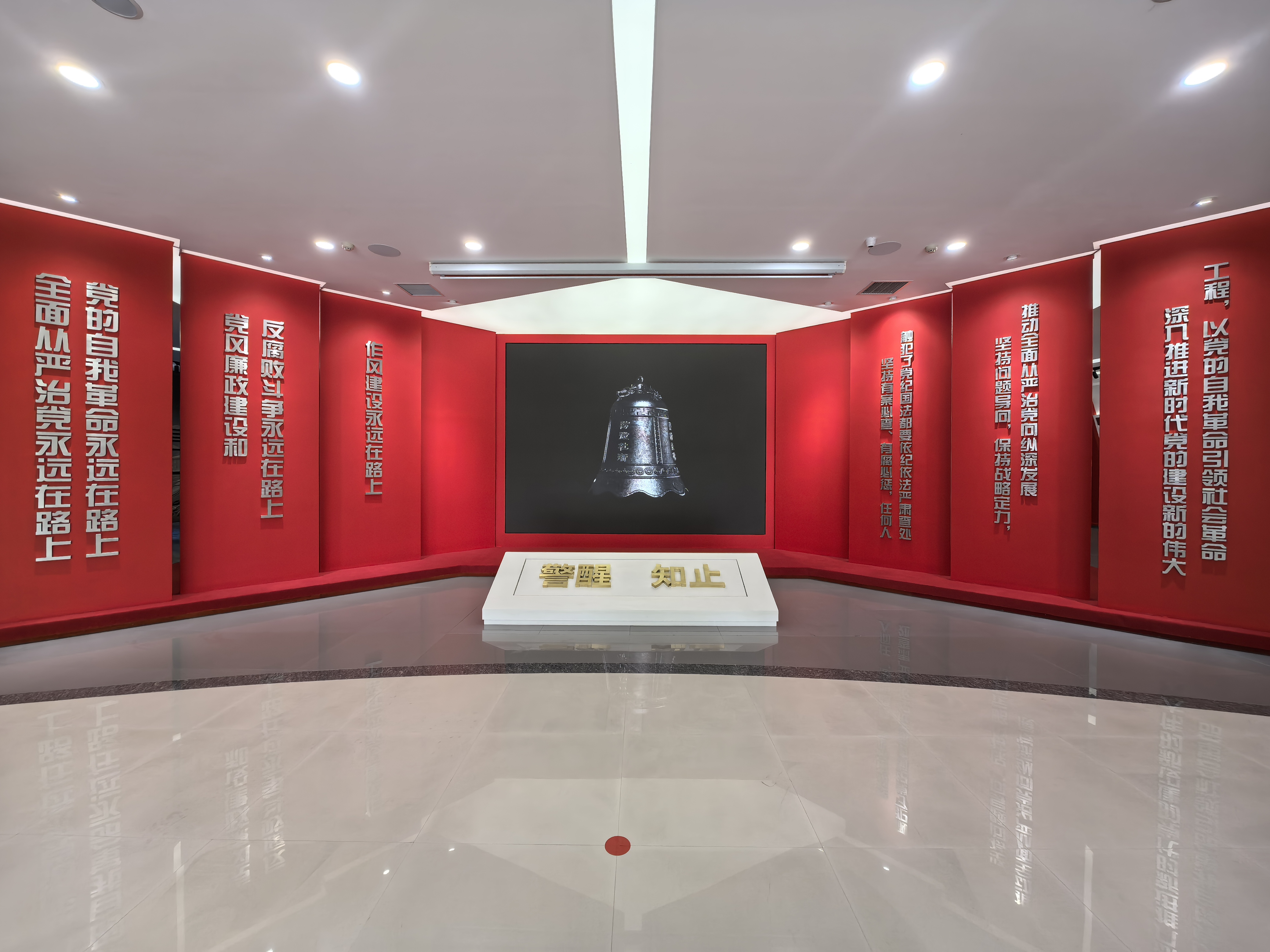 声声警钟的串联下,四个层次分明、脉络清晰的主题篇章依次呈现在参观者眼前:“时代篇”展示了以习近平同志为核心的党中央坚定不移推进全面从严治党的伟大实践,“警示篇”剖析了青岛市近年来查处的各类典型案例,“忏悔篇”模拟呈现了落马干部的监区生活,“奋进篇”则展示了党的二十大以来青岛市纪检监察机关纵深推进反腐败斗争的工作成效。
