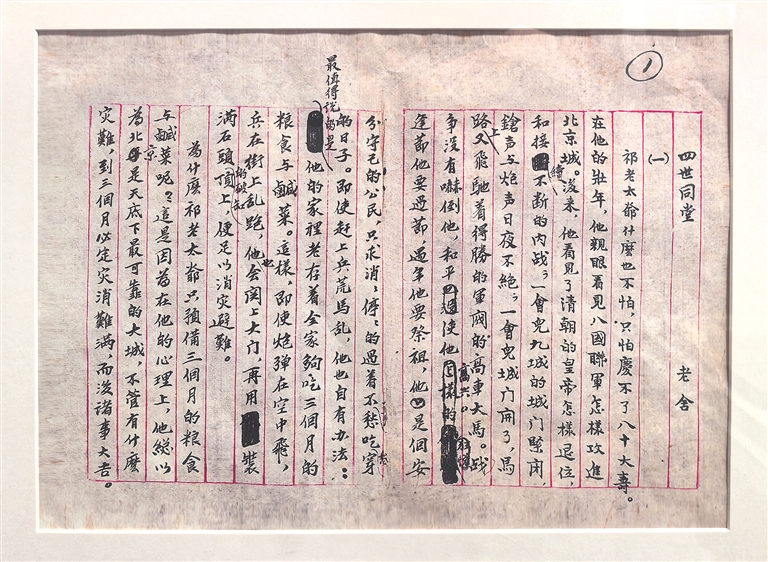 老舍《四世同堂》手稿。