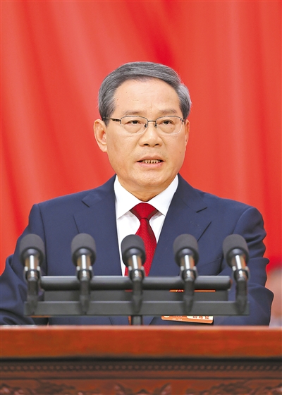 3月5日上午,第十四届全国人民代表大会第三次会议在北京人民大会堂开幕。国务院总理李强作政府工作报告。新华社记者 刘彬 摄