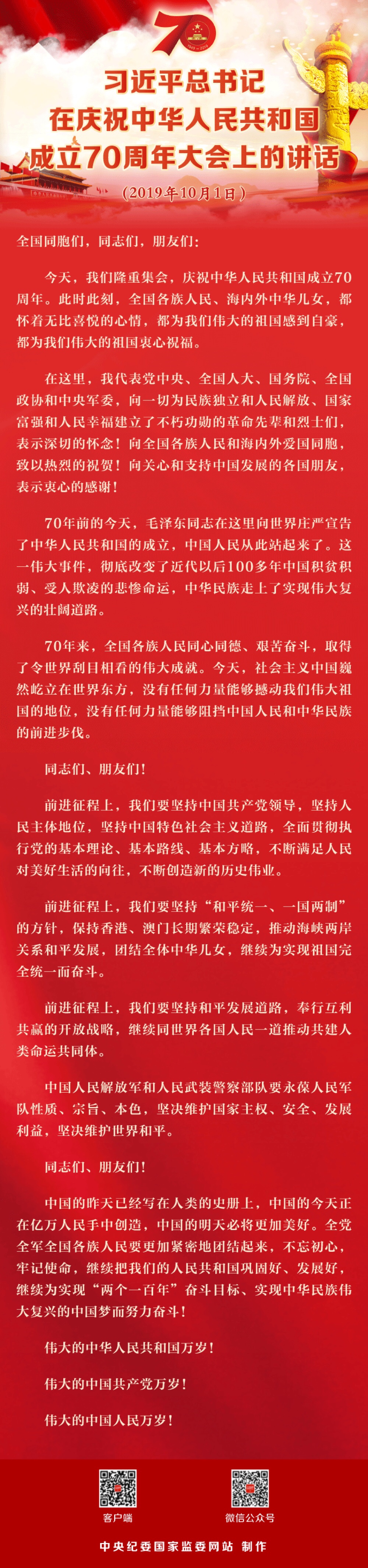 习近平总书记在庆祝中华人民共和国成立70周年大会上的讲话